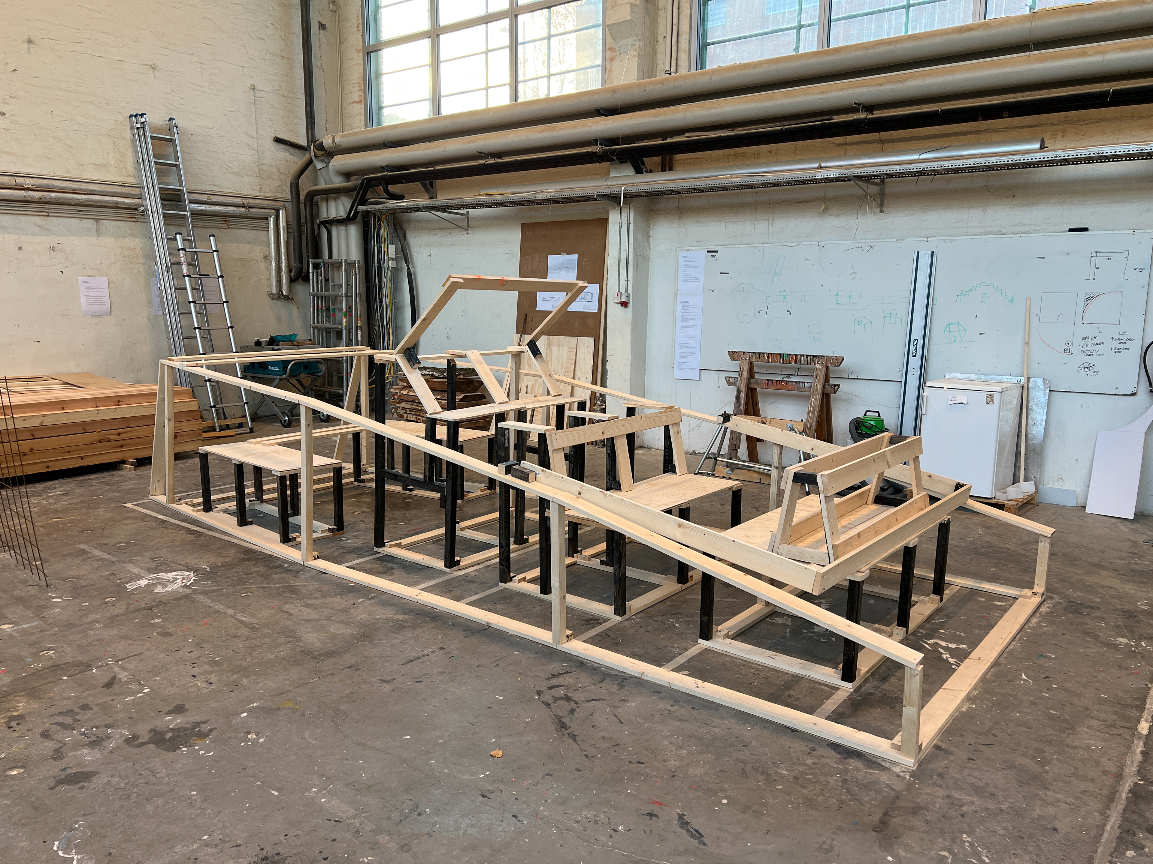 Even though I'm designing a small boat, a boat is pretty big. It can be hard to get the right feeling of size and proportions on screen, I therefore had to build a 1:1 mockup. Over 1 week I built a decent representation of the boats design which would let me to test it. It soon became clear to me that the boat was much bigger than it felt on screen. It is 6,4 meters long and 2,3 meters wide. I got to test out different heights and distances and how my modular design worked.