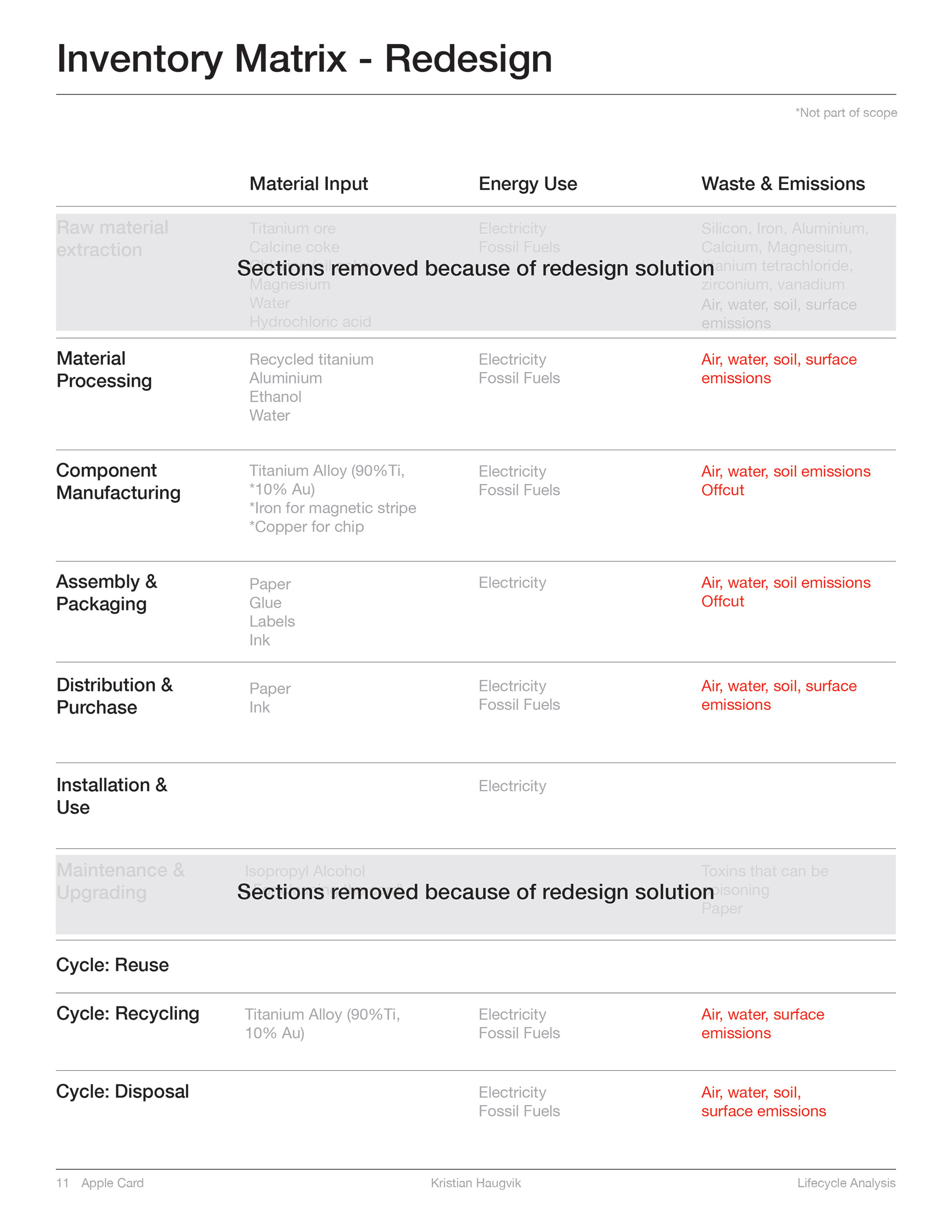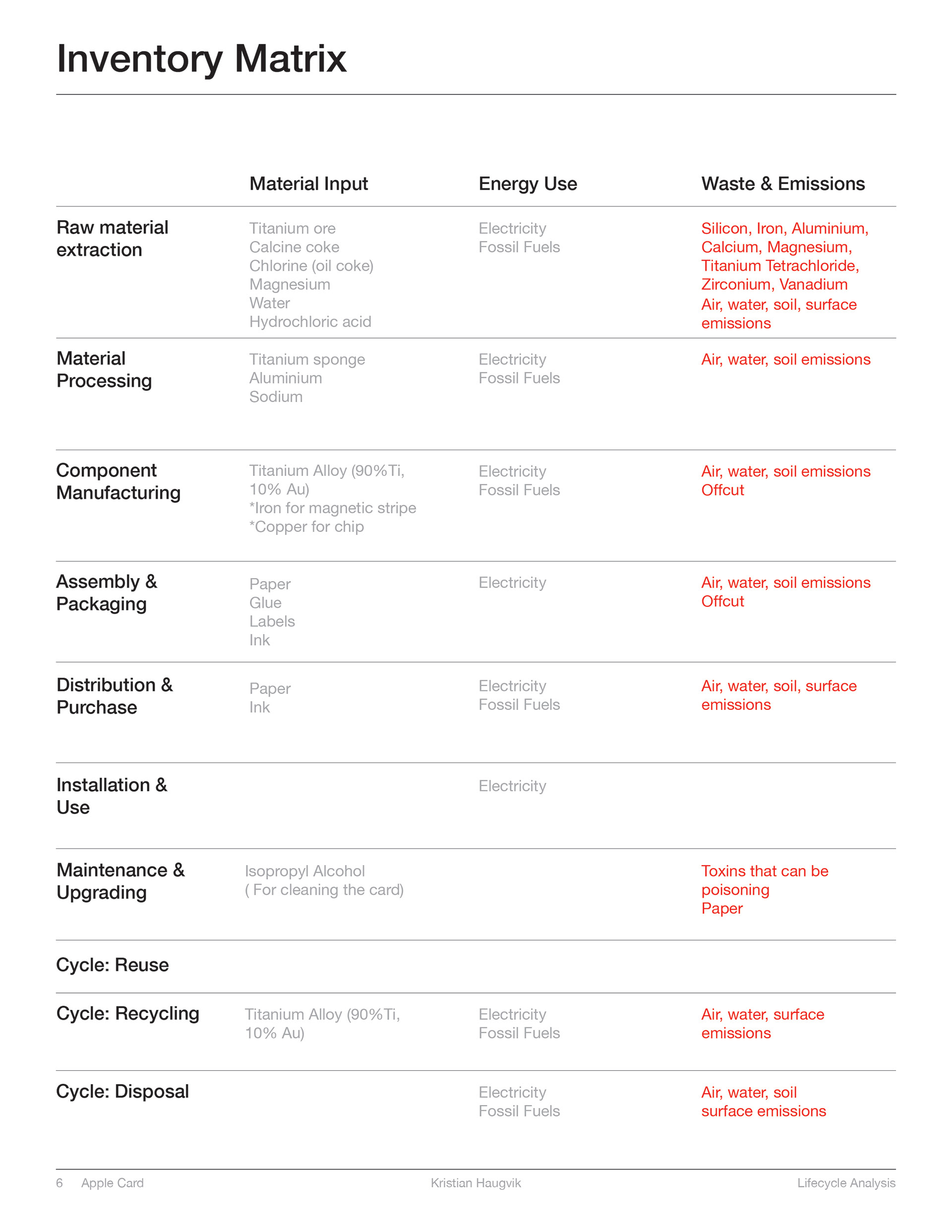 Life Cycle Analysis