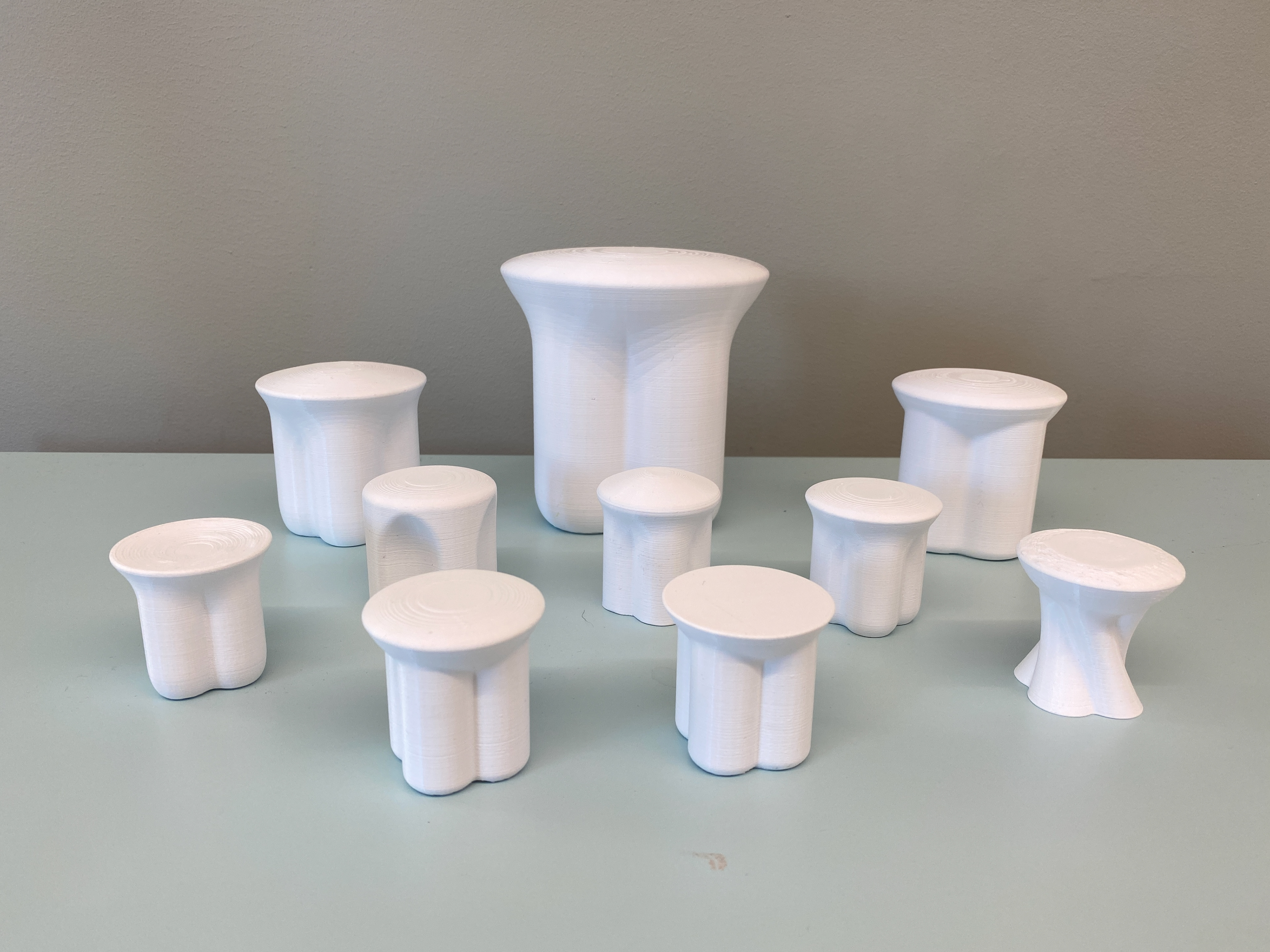 This is the prototype I went for. It’s symmetric but it has at the same time an organic look. Four legs easing into a half sphere with a convex seat. All enhancing the form language I wanted, mushroom associations but not a direct translation.